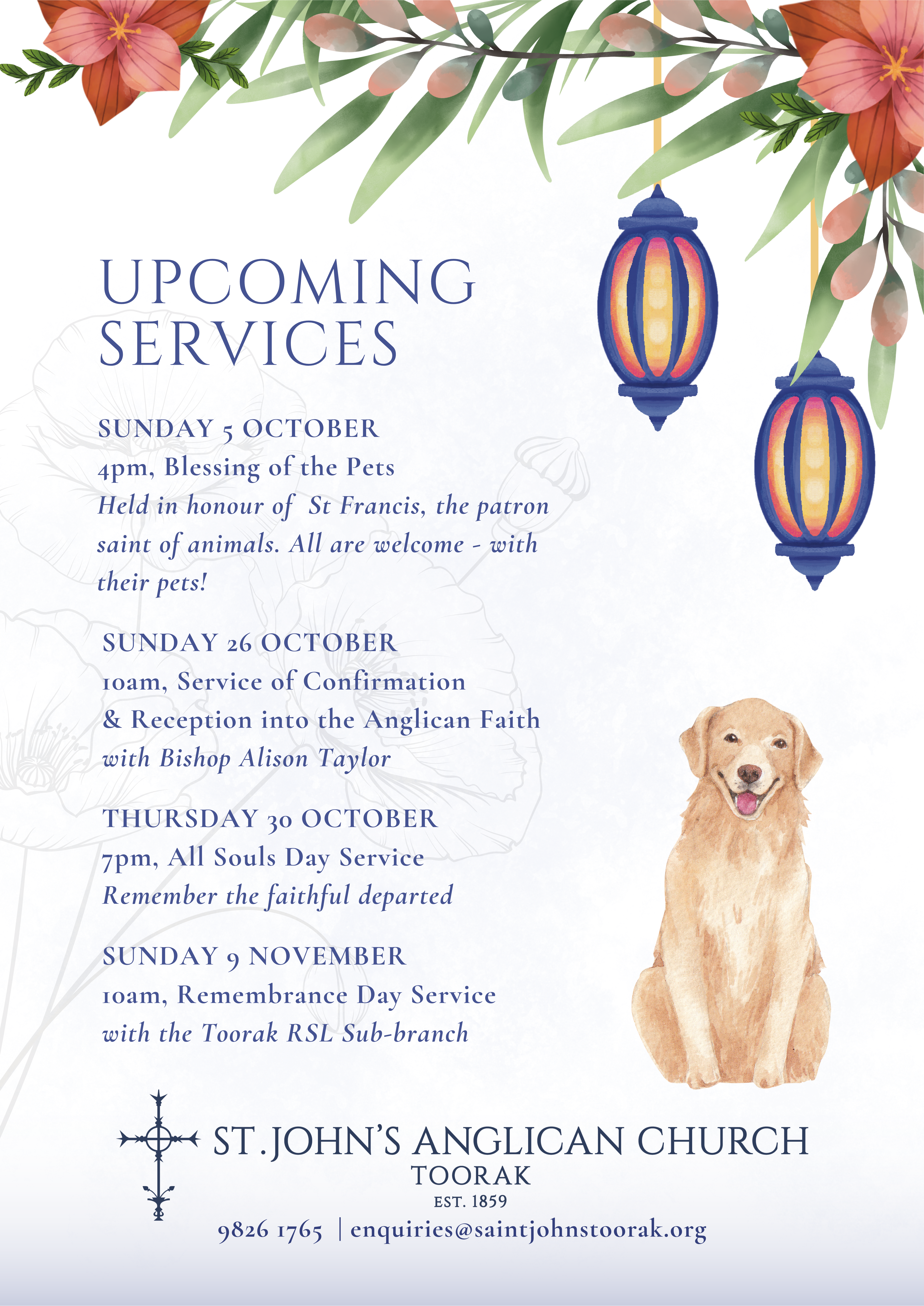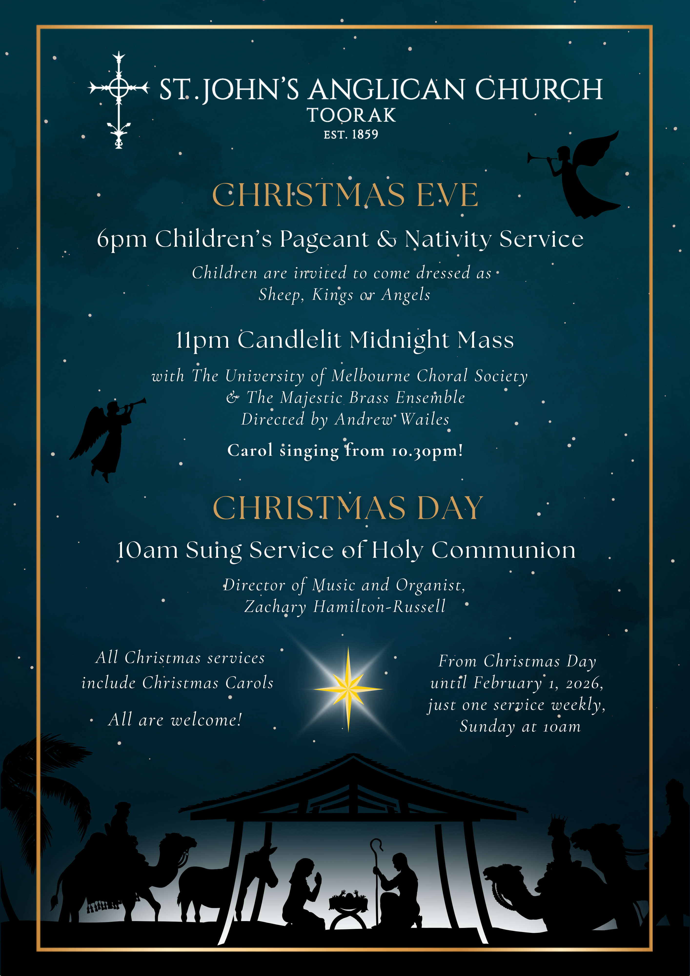 We acknowledge that St. John’s Toorak is on the traditional land of the Boon Wurrung and Wurundjeri people and offer our respects to elders past and present. We recognise and respect the cultural heritage of this land and the ongoing work of reconciliation.